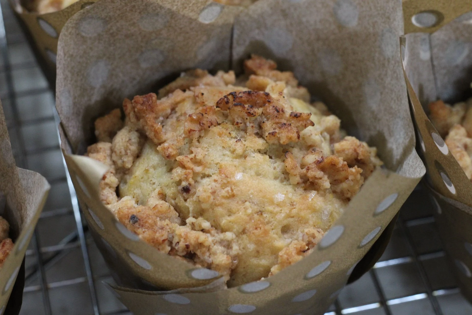 Sprinkle the delicious topping generously on the muffins just before you pop them into the oven to bake.