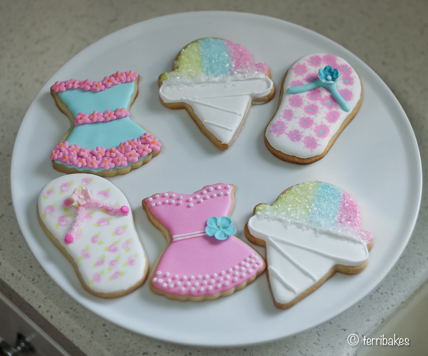In this class, you will have 6 summer-themed cookies and learn the techniques to pipe tri-flavor a snow cone cookie and add “snow” with sparkling sugar, pipe the coolest flip-flops you would love to wear, and a brightly colored vintage bathing suit.