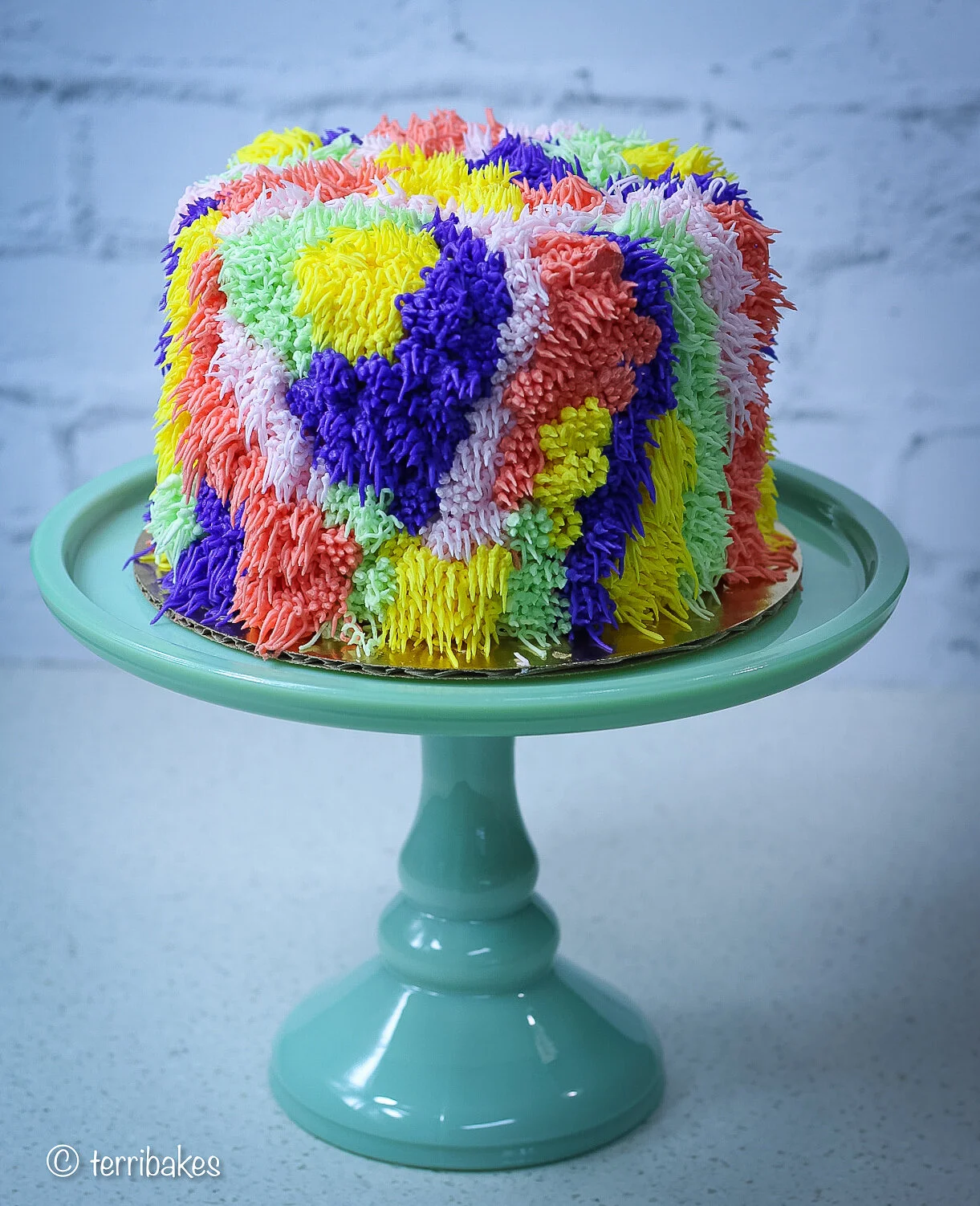 CLASS DESCRIPTION: We’re going back in time to the 70’s with psychedelic colors and shag carpet and decorating a 70’S SHAG CAKE.