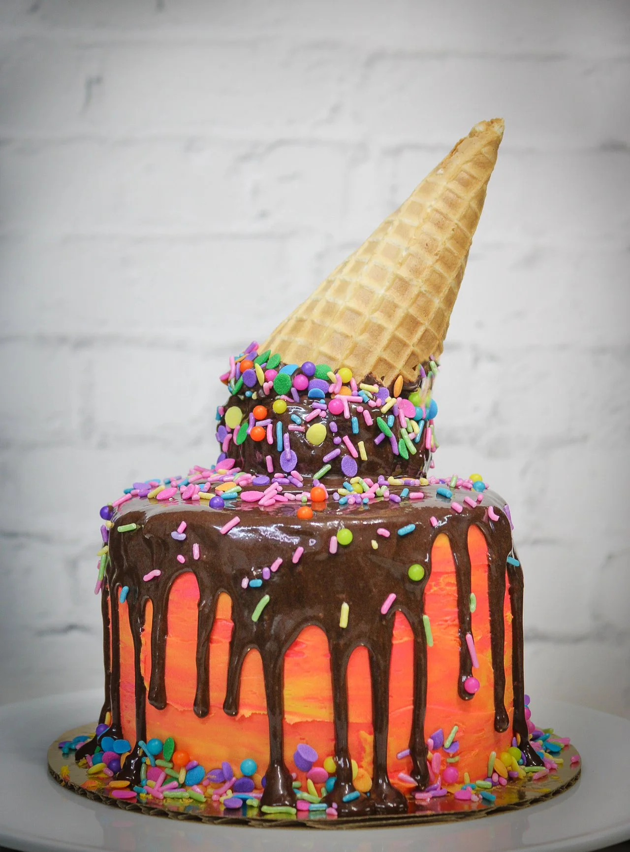 In this class, you will decorate a 6″ vanilla cake with buttercream frosting and a cake pop ice cream cone with melted chocolate.